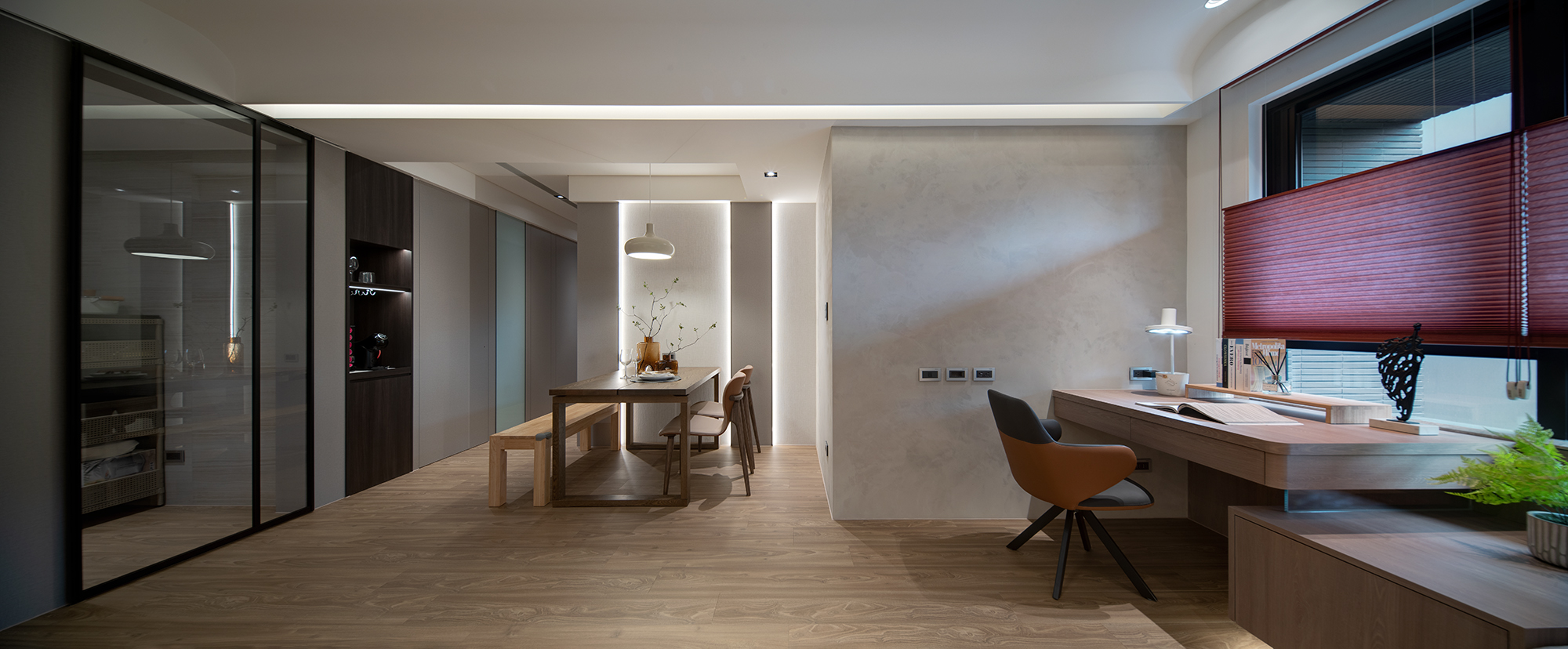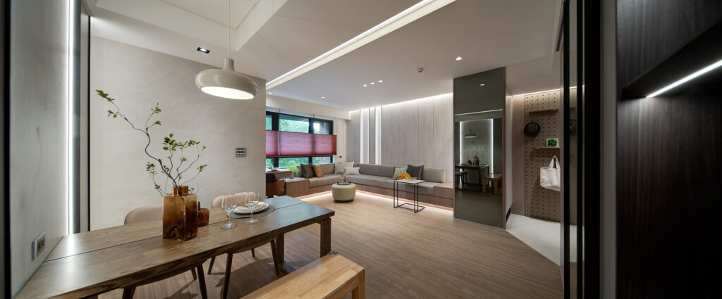 - 公私井然:透過材質轉折與家具佈置,巧妙定義領域界線,在開放透明與私密安寧間游刃有餘。