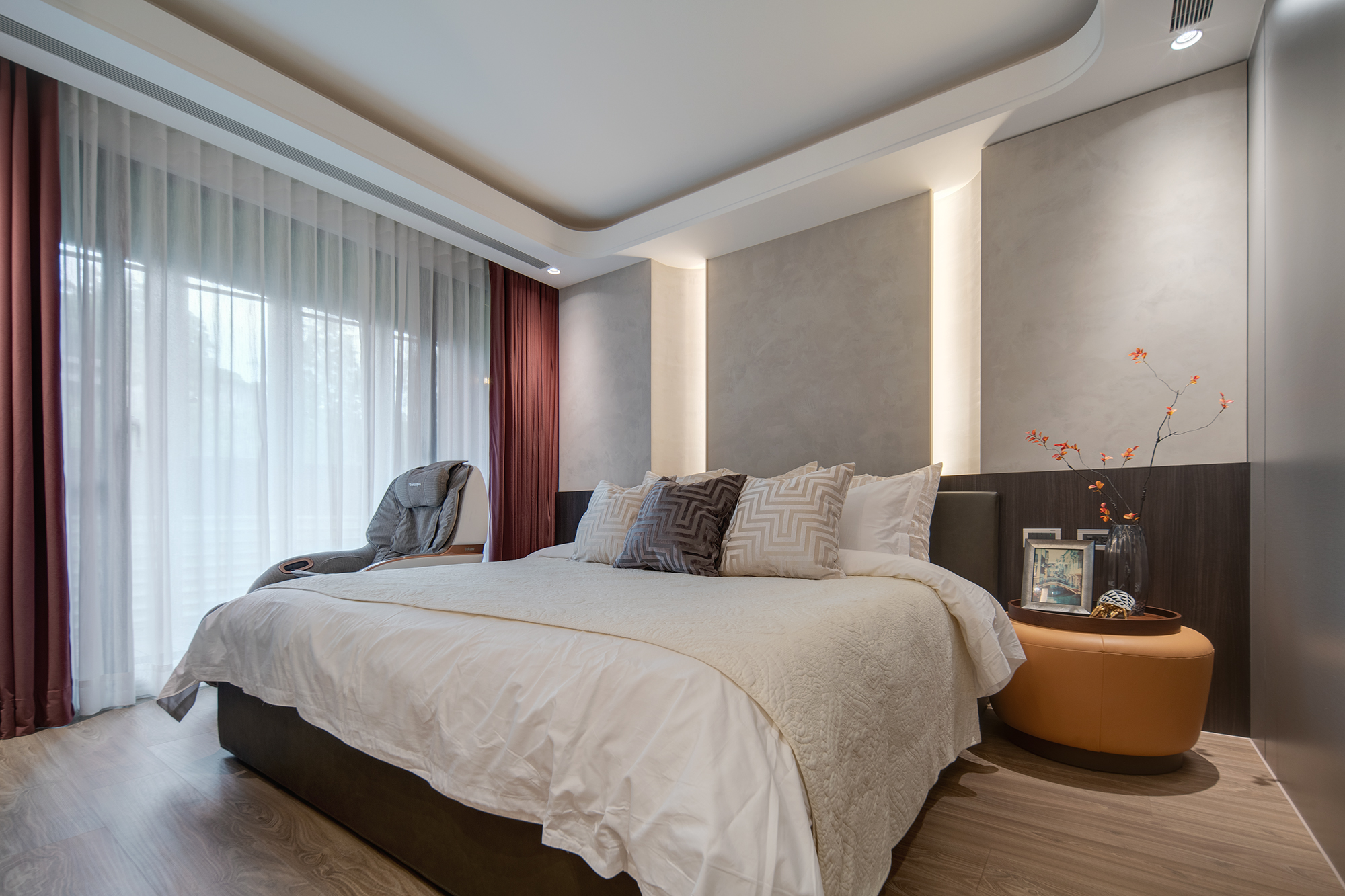 - 靜謐尊榮:透過暖灰與大地色調的疊映,為三十一坪格局注入精品旅宿格局,安頓疲憊的身心。